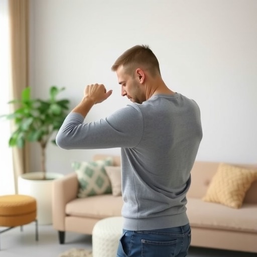 - 摸头试验:坐直或站直,用感觉不舒服的那只手去摸对侧的耳朵(比如用右手摸左耳),注意手臂要从头顶方向绕过去,而不是从侧面。如果能轻松摸到耳朵且没有疼痛,说明肩关节旋转功能正常;如果摸不到耳朵,或者摸到一半就疼得受不了,要警惕肩周炎。